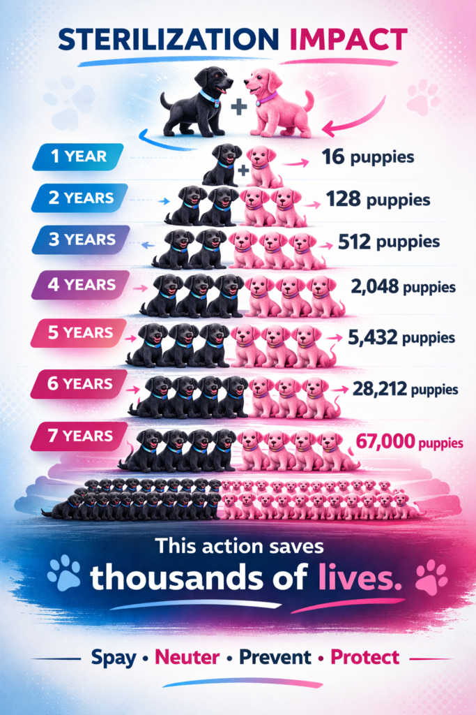 Responsible spay and neuter practices help to stop overpopulation and reduce the number of dogs in need of rescue.